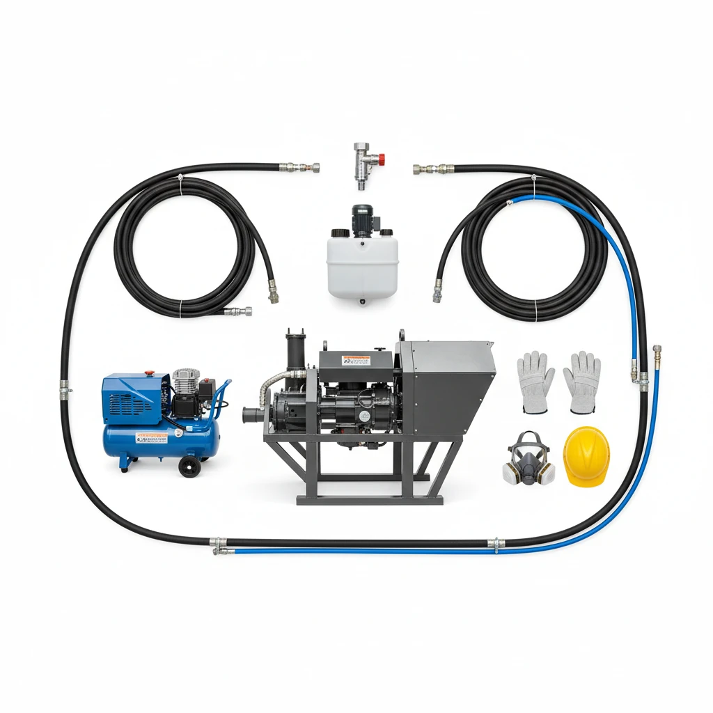 برای تزریق مواد افزودنی مانند سیلیکات سدیم، شتابدهنده گیرش یا روانساز در مسیر پاشش استفاده میشود. این سیستم معمولاً شامل مخزن کوچک، پمپ دوزینگ و شیلنگ تزریق است.
